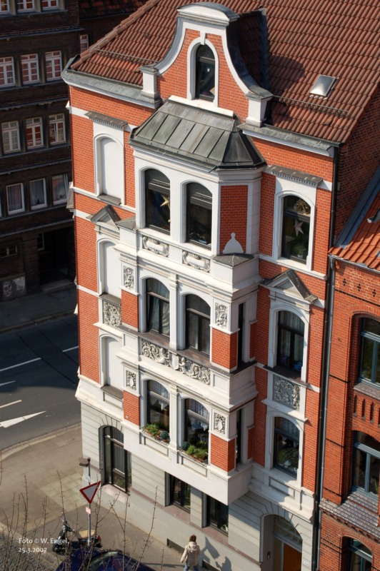 Foto: Fassade Wohnhaus, An der Martinskirche 14 a, aufgenommen vom Turm der Martinskirche am 25.3.2007.