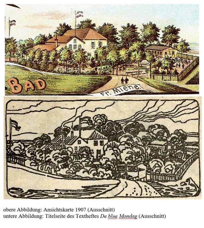 Damit ist der lokale Bezug eindeutig hergestellt. Es geht um die Städter, die am Blauen Montag auf Schusters Rappen ins ferne salt´ge Fössebad pilgern. Was der Schneider Kunrad Lüttje, der auch mal einen Tag Blaumachen wollte, im Fössebad mit einer großen Wasserspritze angestellt und wie er den Besitzer Fritze Miehe verärgert hat, wird bis ins kleinste Detail beschrieben.